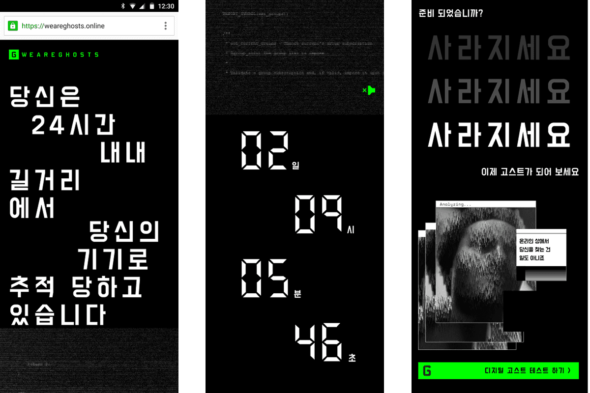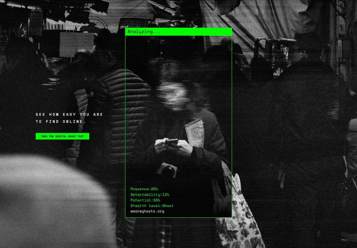 CCTVs were hijacked to broadcast detected passerby’s faces on the billboard analysing their presence and emotions. The website quiz analysed their online presence and identified whether they were a “ghost” [not present/invisible or very present/visible] on social media. The results would dictate the concealed glitch look on their picture and visually show how (un)concealed their faces would be if anyone tried to find them online.